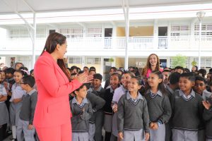 “En esta escuela atendemos más de 500 alumnos, estamos comprometidos con las y los niños a nuestro cargo; aquí le apostamos a la educación como factor de cambio para una mejor sociedad, al igual que usted gobernadora”, dijo la directora en el evento donde también se rindieron honores a la bandera.