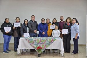 La directora general del DIF, Patricia Alvarado y el encargado del departamento de Protección Civil, Héctor Manuel Reyes Hernández encabezaron la clausura del Curso de Primeros Auxilios impartido en el DIF Municipal de Jesús María.