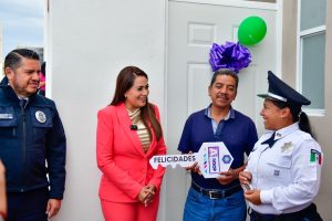 En la entrega de viviendas también estuvieron presentes los diputados Emanuelle Sánchez Nájera y Salvador Maximiliano Ramírez Hernández; Manuel Alonso García, secretario de Seguridad Pública del Estado; Gabriela Caudel de Luna, directora general del Instituto de Vivienda Social y Ordenamiento de la Propiedad; y Antonio Martínez Romo, secretario de Seguridad Pública del municipio capital.