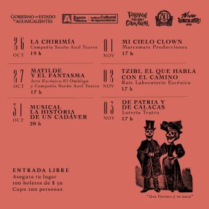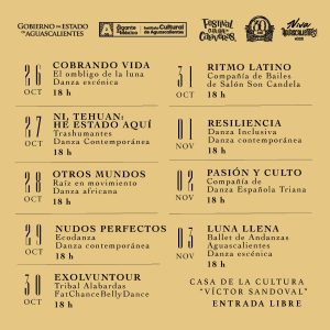 El ICA invitó a la población a disfrutar de alrededor de 200 actividades, en su mayoría gratuitas, como conciertos, obras de teatro, danza, música, recorridos nocturnos, entre otras. Además, habrá altares de muertos, andador gastronómico, pabellón artesanal y los concursos “Pinta tu Calaverita” y “Calaveritas Literarias».