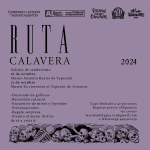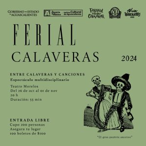 El Gobierno del Estado dio a conocer el programa de actividades que tiene previsto llevar a cabo el Instituto Cultural de Aguascalientes (ICA), como parte del Festival Cultural de Calaveras 2024, que se desarrollará del 26 de octubre al 3 de noviembre.