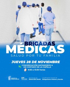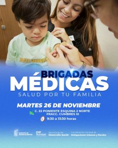 El martes 26 de noviembre se llevará a cabo la brigada médica en calle 22 Poniente esquina con 2 Norte, en el fraccionamiento Cumbres 3.
