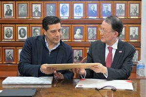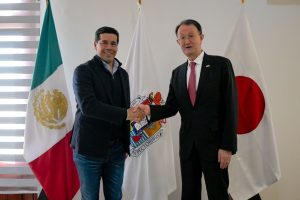 Durante el encuentro efectuado en Palacio Municipal, Leo Montañez, dio la bienvenida al diplomático, agradeció la confianza que la comunidad japonesa ha depositado en Aguascalientes y refrendó el compromiso de seguir impulsando estrategias para fortalecer las relaciones empresariales, así como la permanencia y establecimiento de nuevas compañías industriales en la entidad.