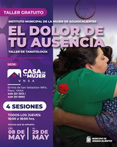 Estas sesiones se imparten cada jueves de 4:00 a 6:00 de la tarde en la Casa de la Mujer ubicada en Villas de Nuestra Señora de la Asunción, y están abiertas a mujeres que buscan un apoyo para comprender y aprender a transitar por sus propios procesos de pérdida o apoyar a otros desde una perspectiva empática y humana.