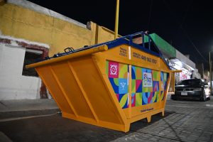 Con el objetivo de fortalecer la cultura del reciclaje y optimizar el manejo de residuos, el Gobierno Municipal de Jesús María, a través de la Secretaría de Servicios Públicos, instaló un nuevo contenedor de residuos, diseñado por el propio personal municipal. Este innovador prototipo se colocó en la calle San Miguel, esquina con Julio Cadena.