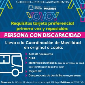 Para más información, llamar al teléfono 449 910 21 06, extensión 3631, o acudir directamente a las oficinas de la Coordinación General de Movilidad, en el Complejo Tres Centurias, a un costado del Hospital Hidalgo.