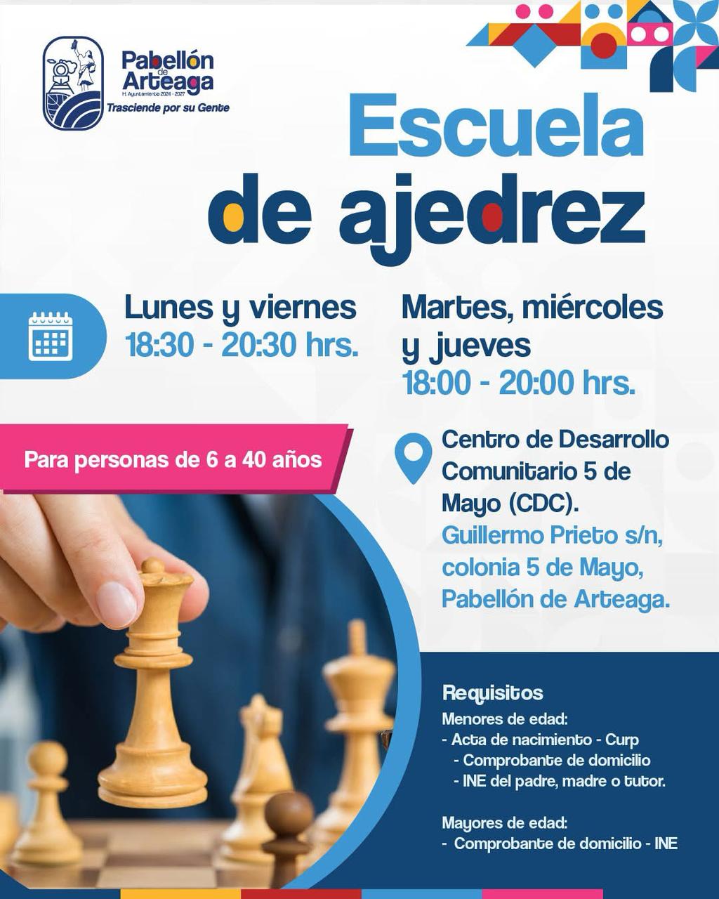 Participa en nuestra Escuela de Ajedrez, dirigida a personas de 6 a 40 años. Mejora tus habilidades lógicas, estratégicas y diviértete aprendiendo con nosotros.