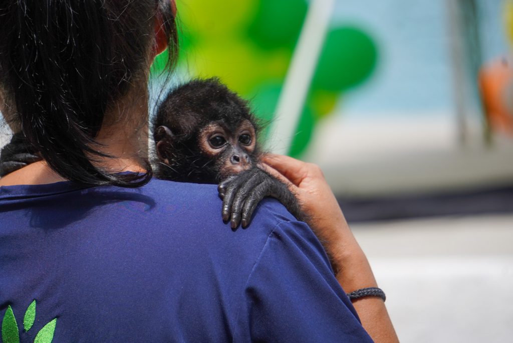 Se trata de un ejemplar de mono araña que tiene alrededor de seis meses de edad