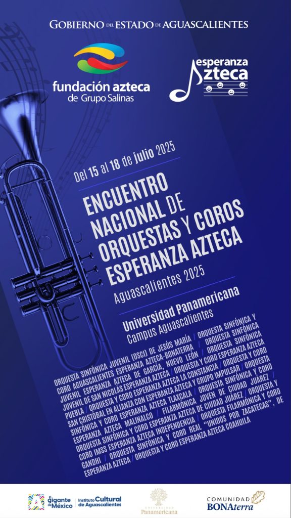 Del 15 al 18 de julio, Aguascalientes será sede del Primer Encuentro Nacional de Orquestas y Coros Esperanza Azteca, un evento que reúne el talento de niñas, niños y adolescentes del país.