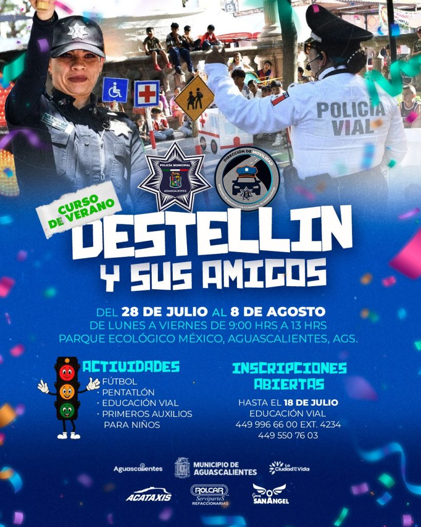 El director de Prevención de las Violencias y la Delincuencia, Salvador de Baruc Carrillo Córdoba dijo que la Secretaría de Seguridad Pública Municipal ofrece a los padres de familia un curso de verano denominado “Destellín y sus amigos”, dirigido a niños de entre 10 y 12 años de edad, se realizará del 28 de julio al 8 de agosto, en el parque México, con un horario de 9:00 a 13:00 horas, los menores aprenderán primeros auxilios, educación vial, fútbol, pentatlón. Las inscripciones