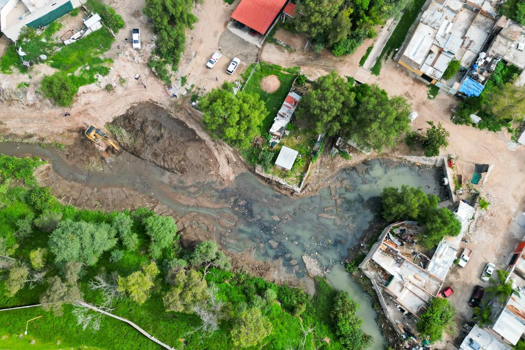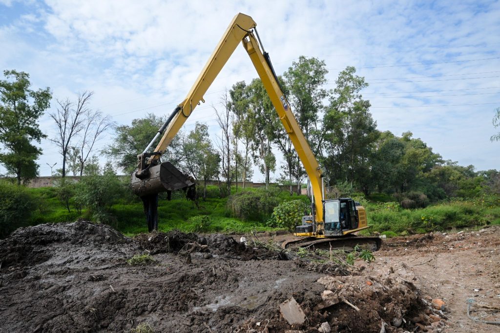 Leo Montañez explicó que para remover lodo y escombro fue necesario intervenir la zona con maquinaria pesada, específicamente con una excavadora de oruga y brazo extendido de 30 metros de largo, con lo cual se permite un flujo de agua más adecuado del agua pluvial, se evitan inundaciones y riesgos para los habitantes de esta parte del sur de la ciudad.