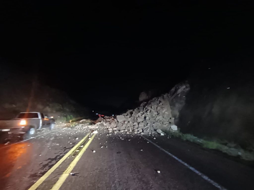 Se reporta un derrumbe de cerro sobre la carretera federal 70 poniente, a la altura de Milpillas de Abajo.