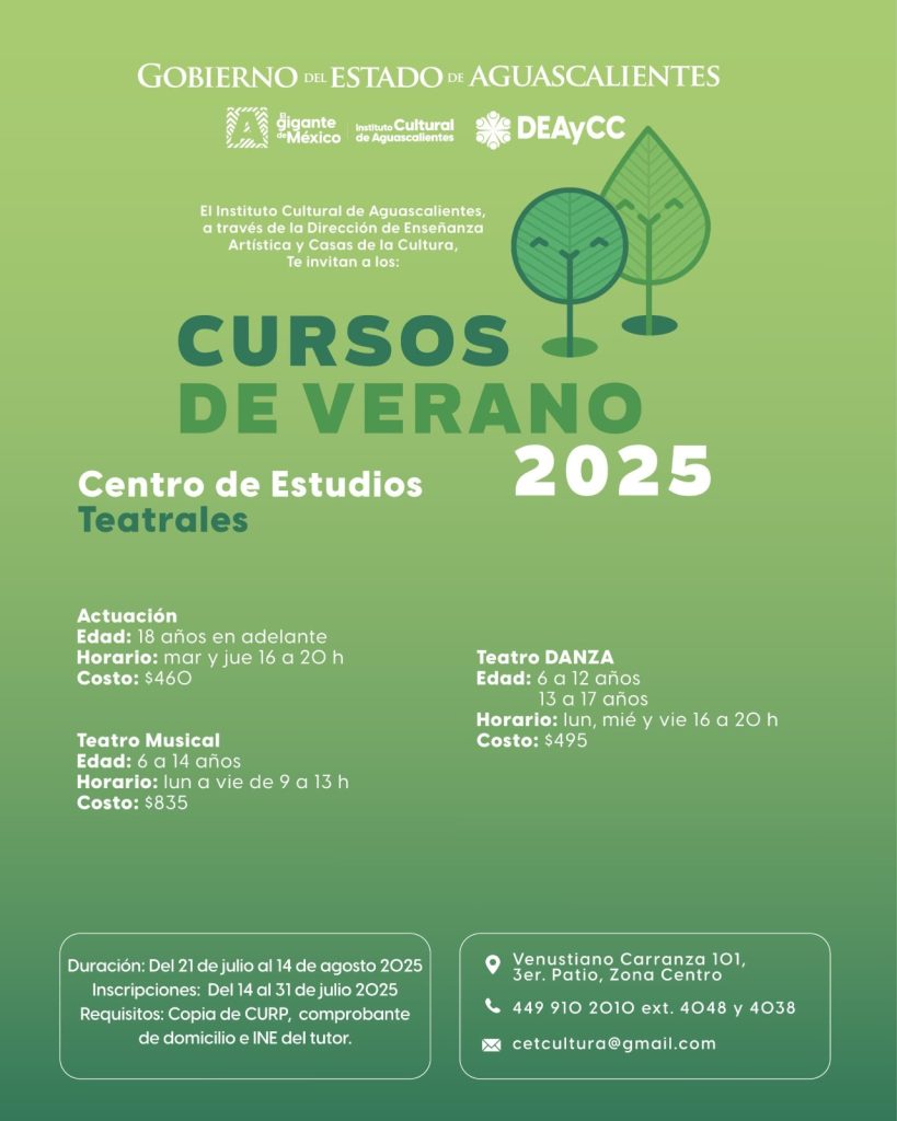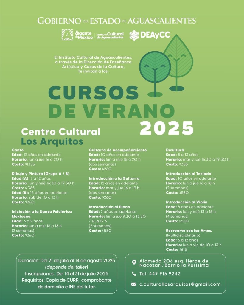 Redacción: ¡Aprovecha tus vacaciones y aprende una disciplina artística! El Instituto Cultural de Aguascalientes (ICA) ofrece una amplia variedad de cursos para todas las edades durante este verano. Las clases se llevarán a cabo del 21 de julio al 15 de agosto en el Centro Cultural Los Arquitos, Centro de Artes Visuales, Centro de Artes […]