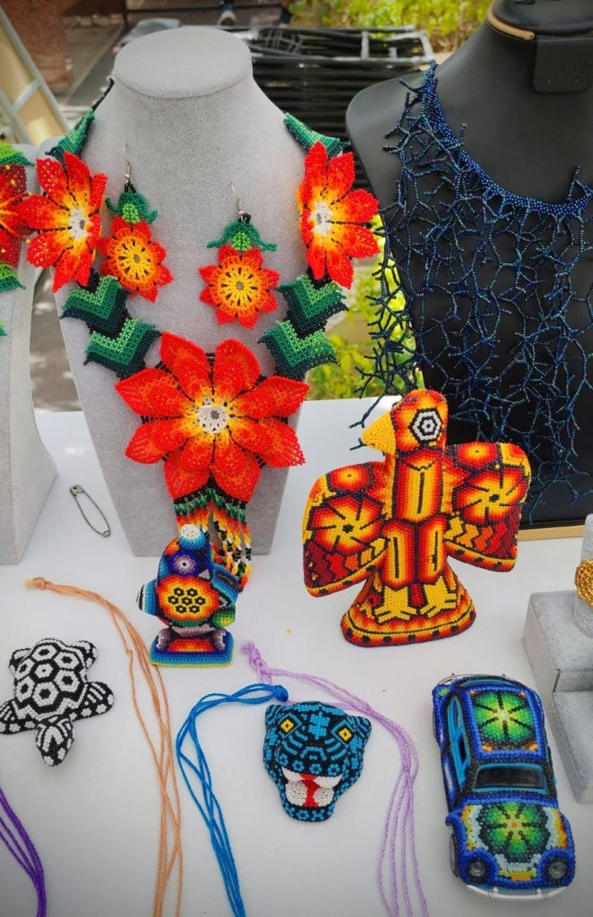 Artesanas y artesanos de Aguascalientes y otros 10 estados, así como integrantes de las comunidades tzotzil, purépecha, chontal, wixárika y otomí, participan en el pabellón De Corazón Artesano, ubicado en el Patio de las Jacarandas.