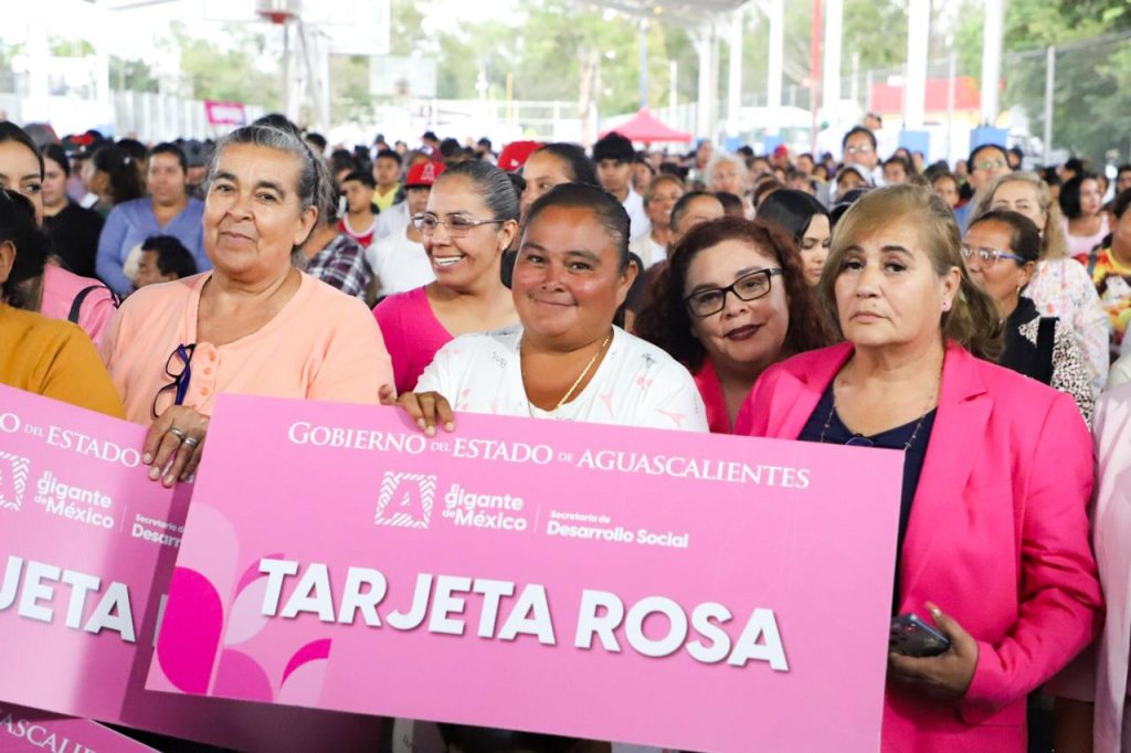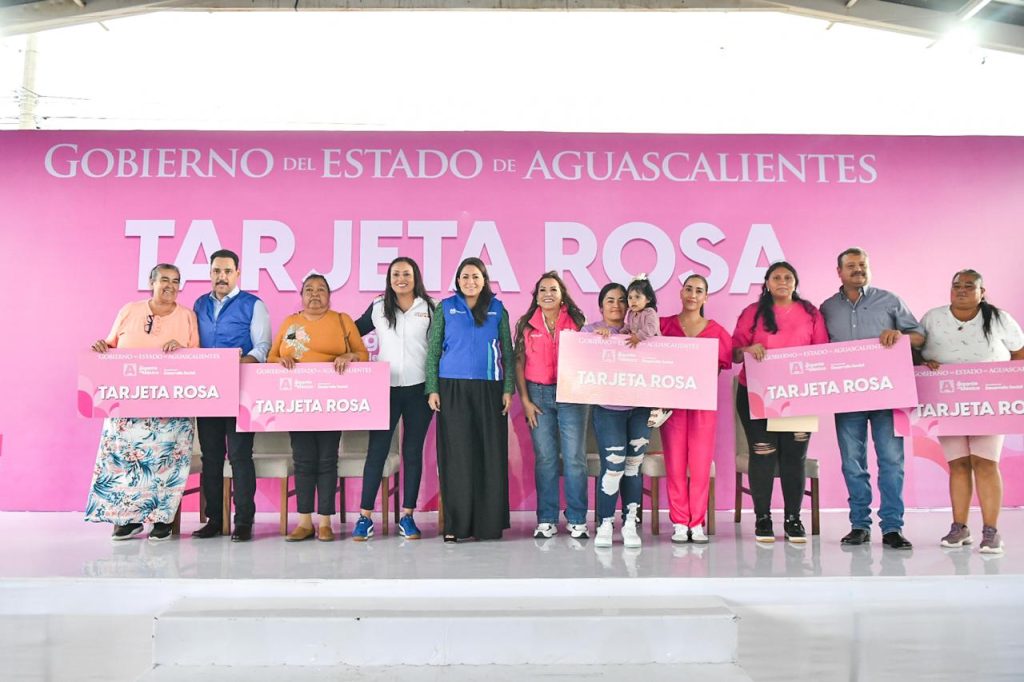 La gobernadora de Aguascalientes, Tere Jiménez, entregó 200 Tarjetas Rosas a mujeres de Pabellón de Arteaga, con la que tendrán acceso a un apoyo económico bimestral en reconocimiento a su trabajo a favor de sus comunidades. Este año, la meta es beneficiar a 3 mil mujeres que son agentes de cambio.