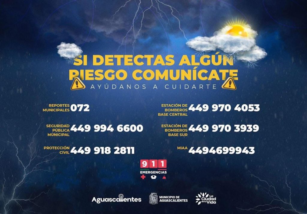 Redacción: 📞 Puedes comunicarte a los siguientes números: ▪️ Reportes municipales: 072 ▪️ Seguridad Pública Municipal: 449 994 6600 ▪️ Protección Civil: 449 918 2811 ▪️ Estación de bomberos base central: 449 970 4053 ▪️ Estación de bomberos base sur: 449 970 3939 ▪️ MIAA: 449 469 9943 ▪️ Emergencias: 911 👷♂️ Ayúdanos a cuidarte. […]
