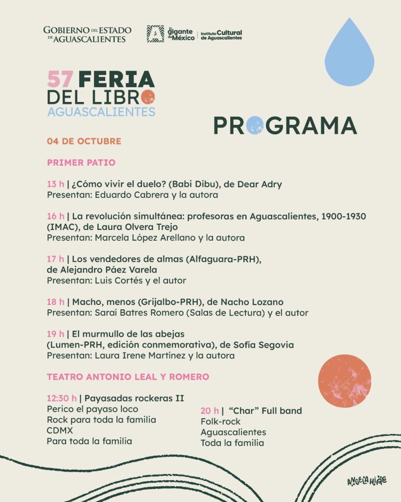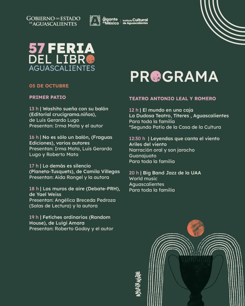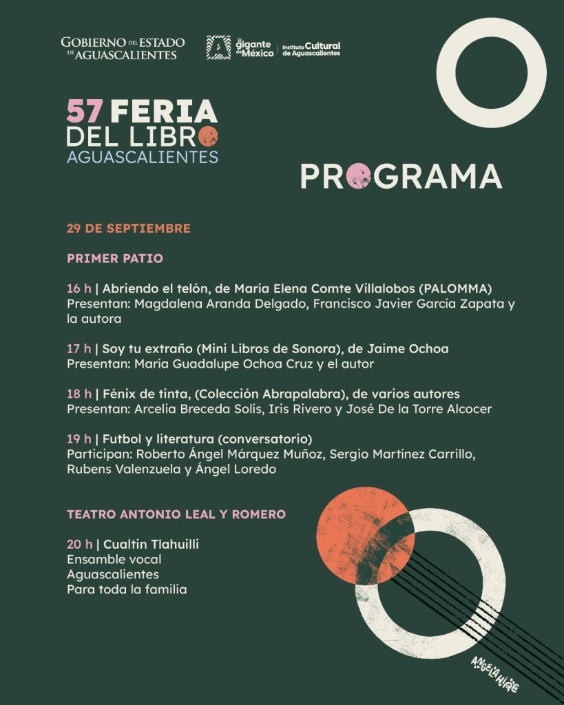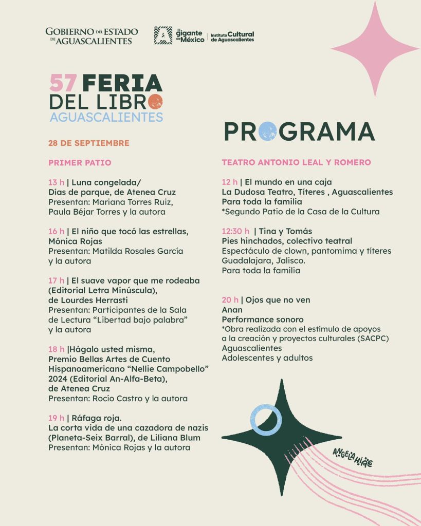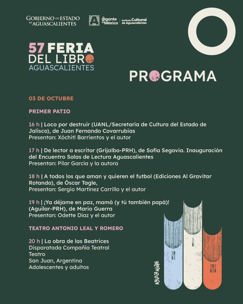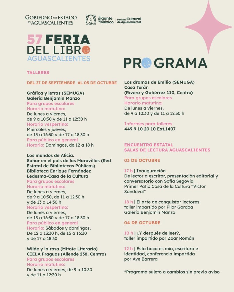El programa general se puede consultar en las páginas de Facebook del ICA https://goo.su/7rf7mG y de la Feria del Libro Aguascalientes https://goo.su/flvtG.
