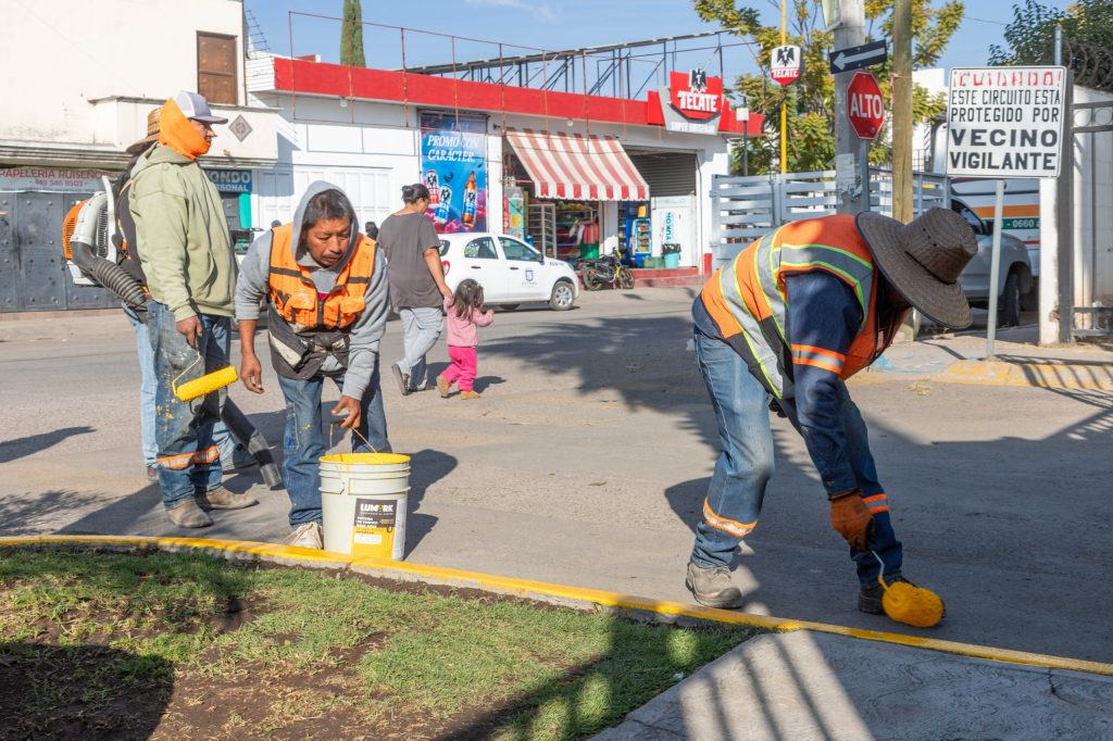Durante esta jornada, encabezada por el presidente municipal César Medina, se realizaron diversas acciones de limpieza y mantenimiento en la avenida principal del fraccionamiento, entre ellas desmalezado, poda de palmeras, barrido de vialidades, limpieza del camellón central, así como pintura de topes, guarniciones, contenedores de basura y el acceso principal a Ruiseñores. Estas labores se realizaron en coordinación entre personal de Servicios Públicos, Obras Públicas, Agua Potable y otras dependencias municipales, con la participación activa de vecinas y vecinos.