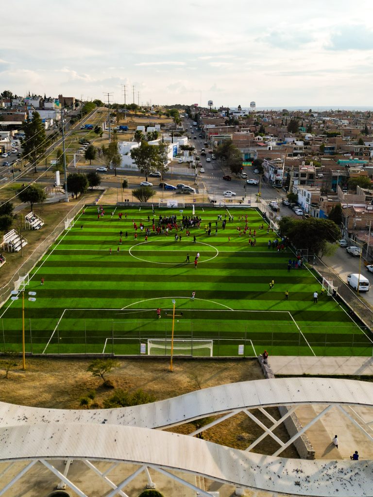 - Impulsamos del deporte con obras de calidad como esta cancha de pasto sintético de medidas profesionales: Leo Montañez.